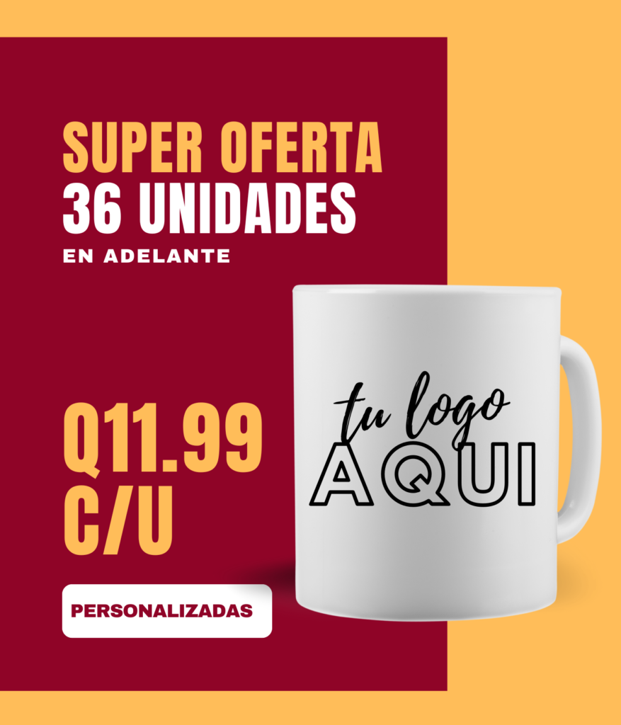 Tazas personalizadas full impresion, a solo Q 11.99 cada una, desdde 36 unidades en adelante,